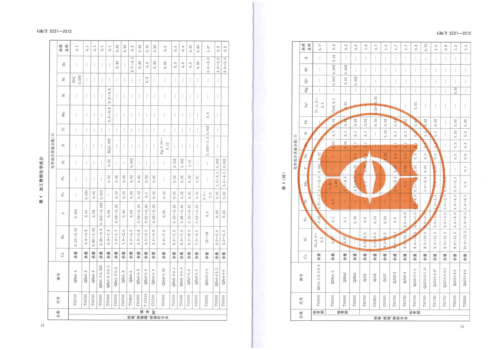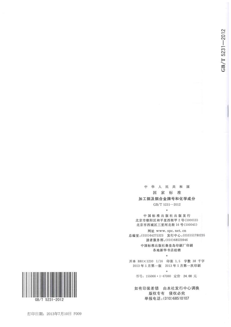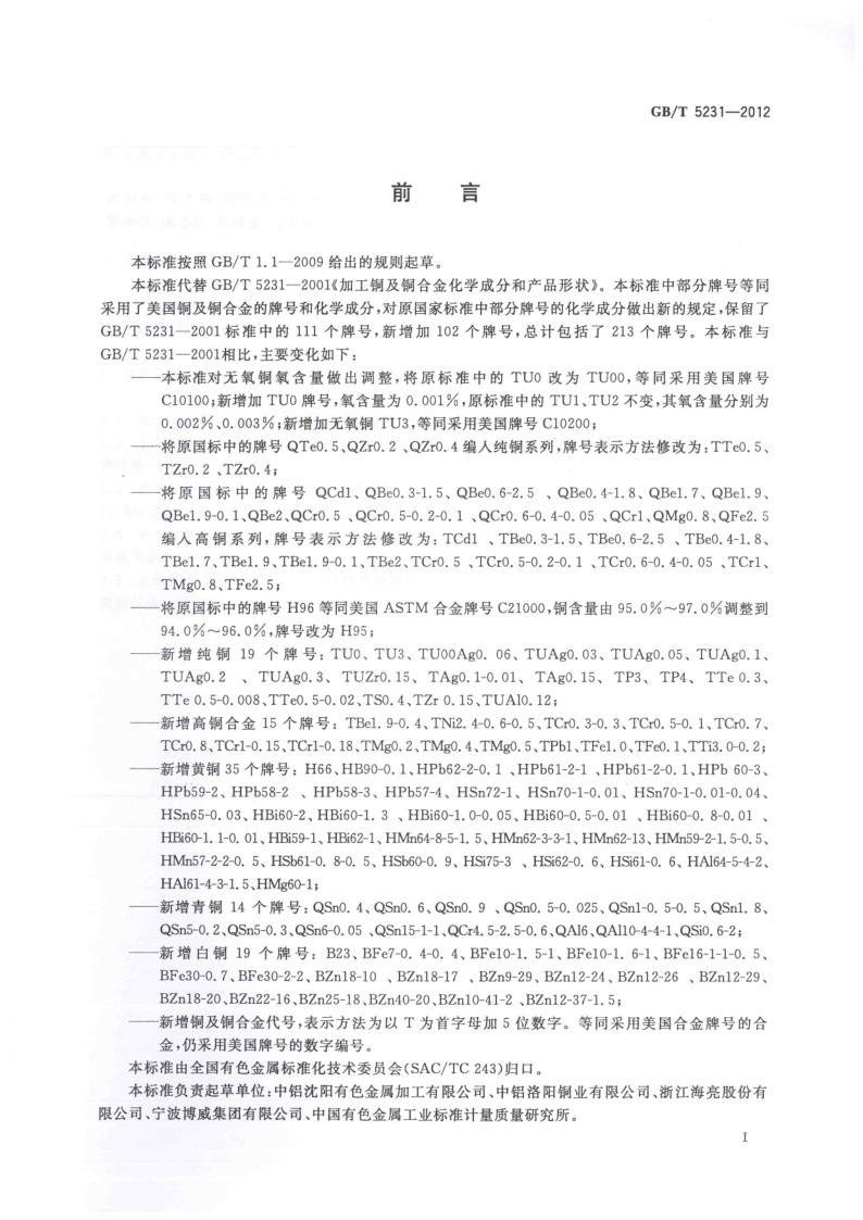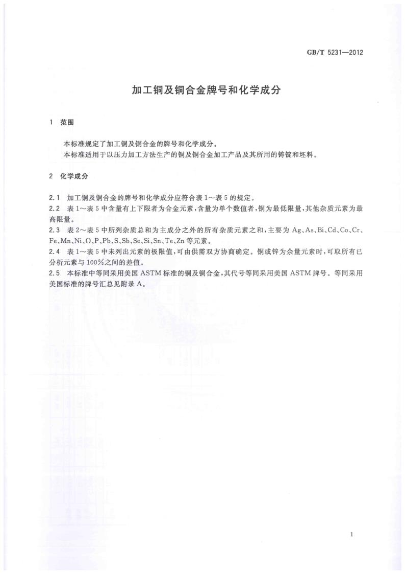 GBT 5231-2012 加工銅及銅合金牌號和化學成分