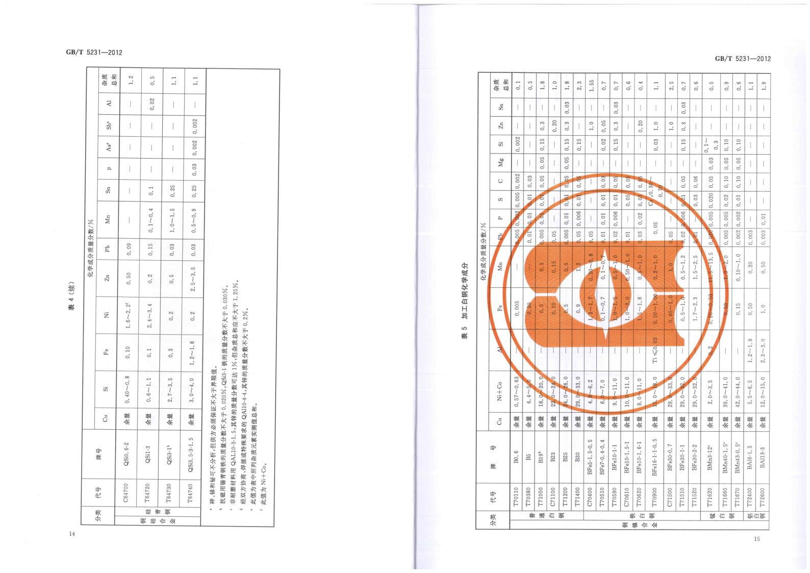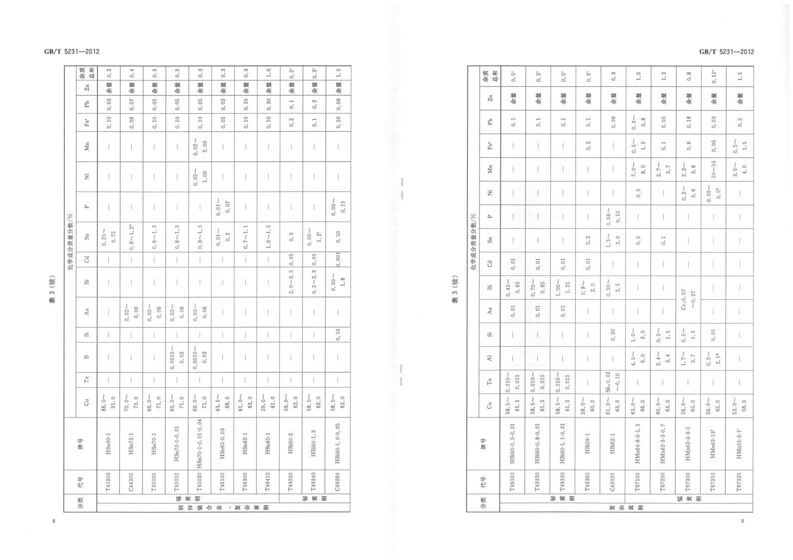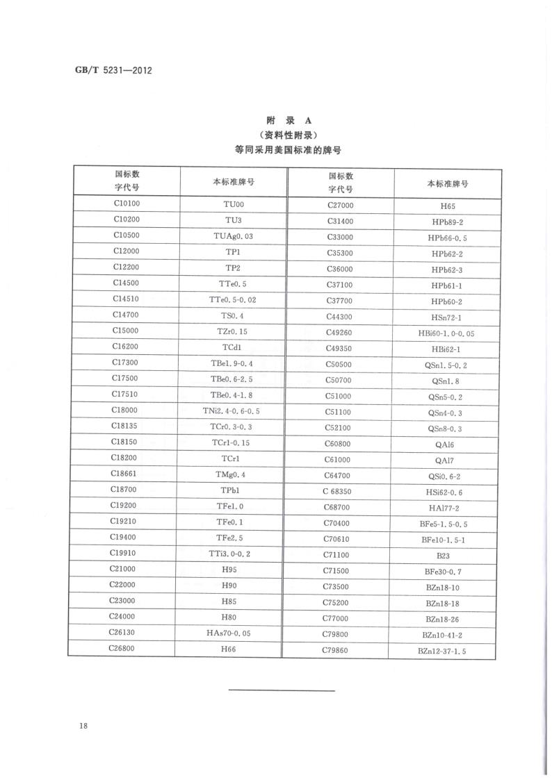 GBT 5231-2012 加工銅及銅合金牌號和化學成分