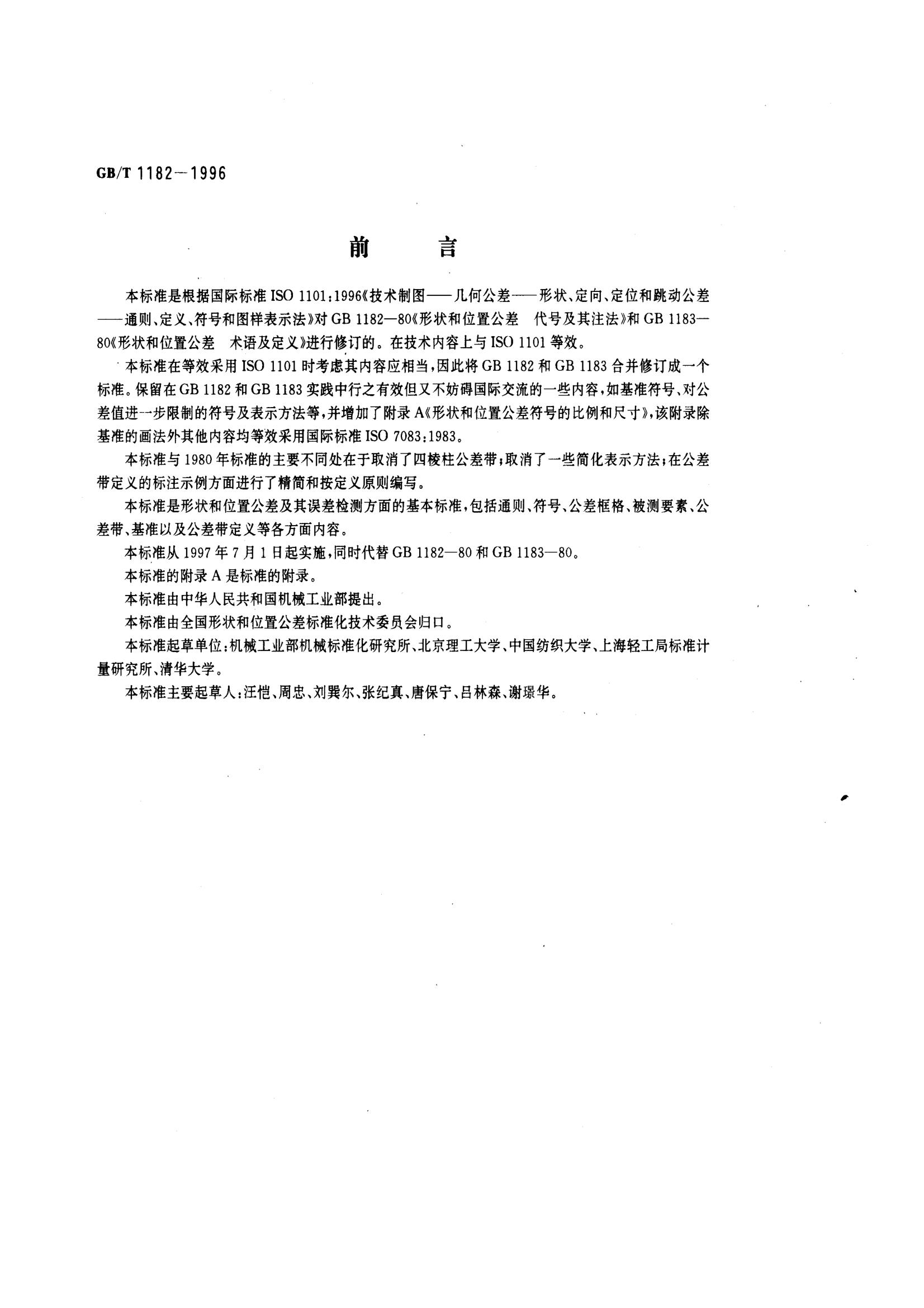GBT1182-1996形狀和位置公差通則、定義、符號和圖樣表示法