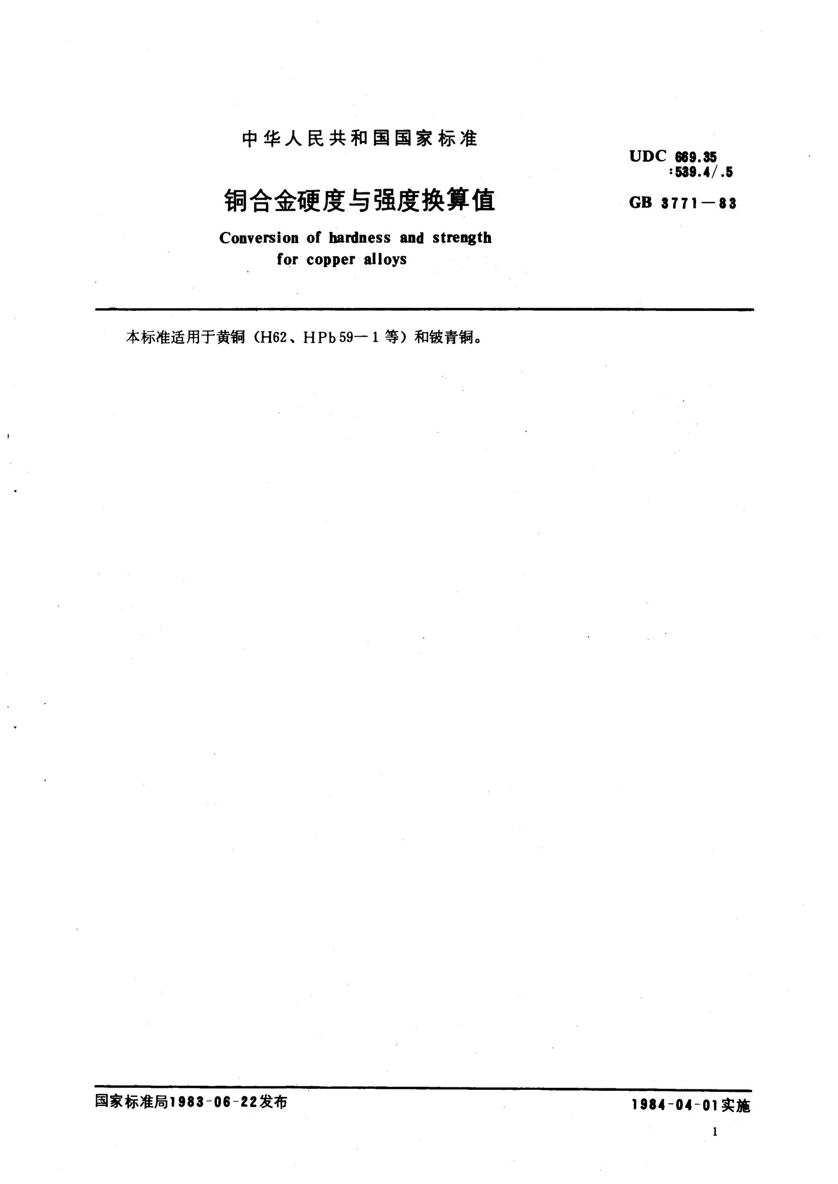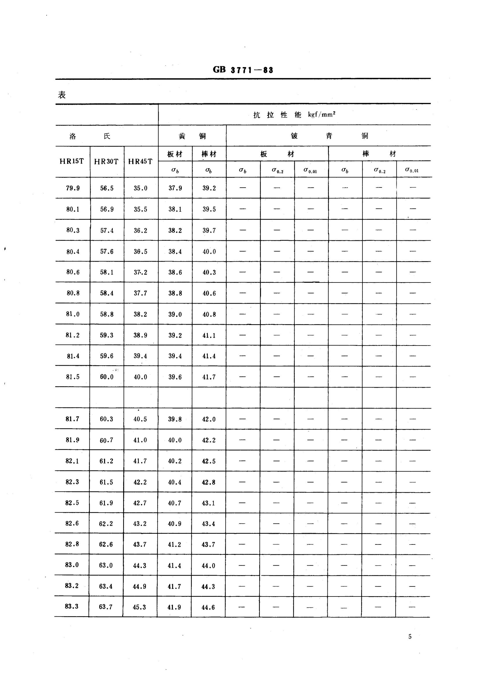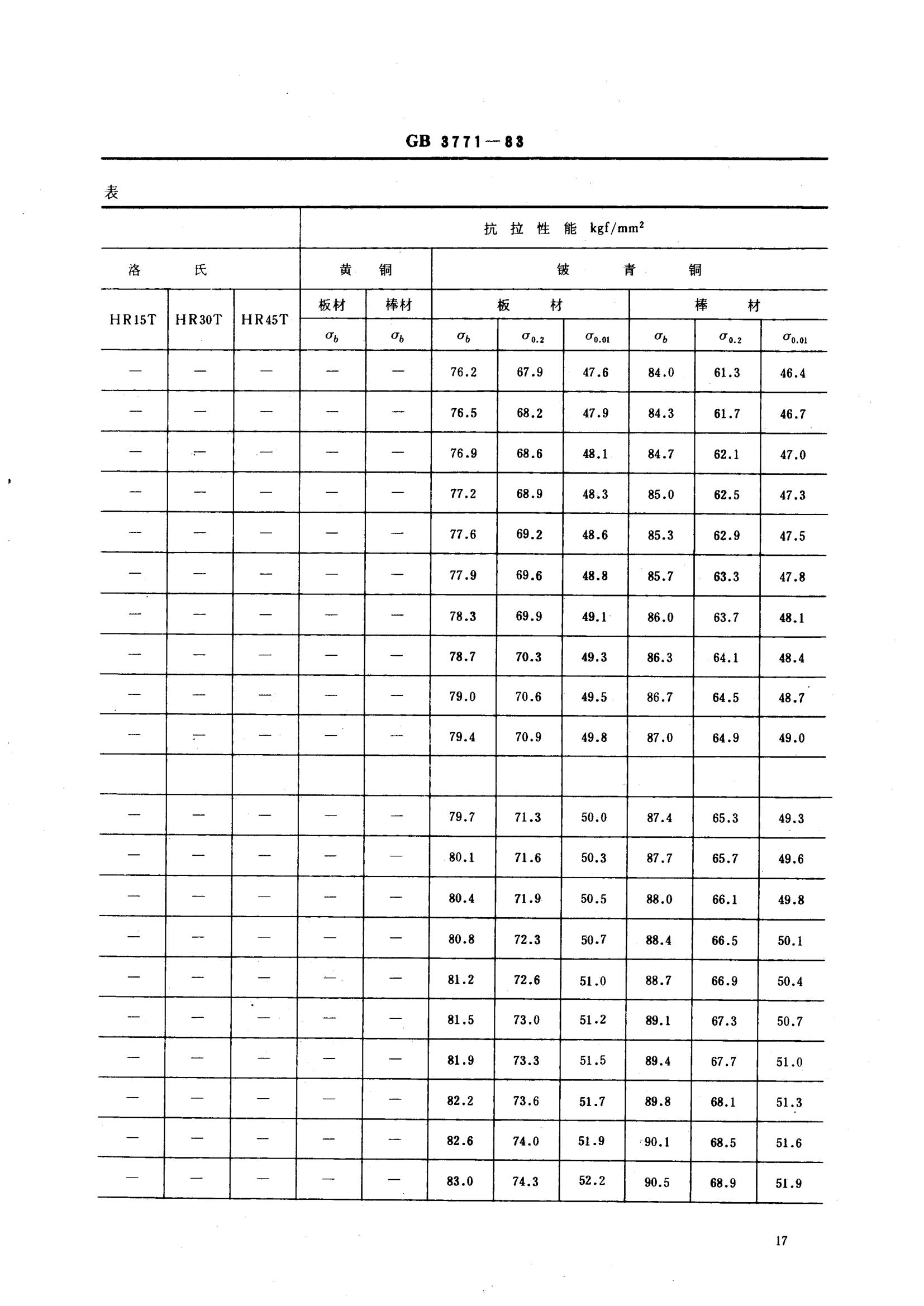 GBT3771-1983 銅合金硬度與強度換算值